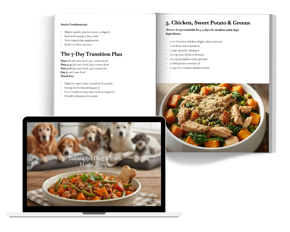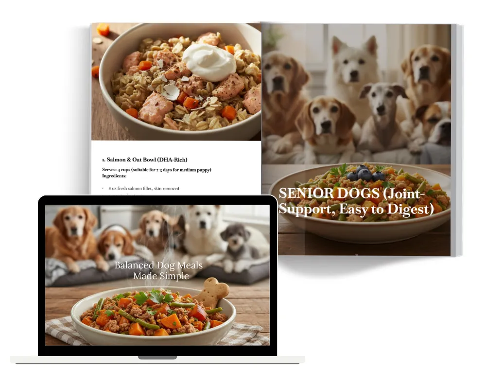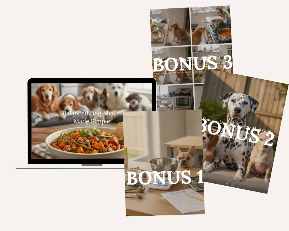 When you get "Balanced Dog Meals Made Simple Guide", you’ll also receive three exclusive resources that address the challenges dog parents face when switching to homemade meals—how much to feed, what to feed at each life stage, and how to make it sustainable without stress or guesswork.